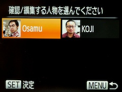 ただし、名前に使用できる文字がアルファベットのみで、使える文字数が少ない(実質的に名前のみ。姓と名前は無理)のは、少々拍子抜けだった。また、パナソニックの個人認証のように、撮影中のモニターに名前を表示しない。そのためちゃんと認証しているか不安だったが、ほとんどの場合杞憂だった。もちろん再生モードでは、顔の下に登録した名前が表示される。